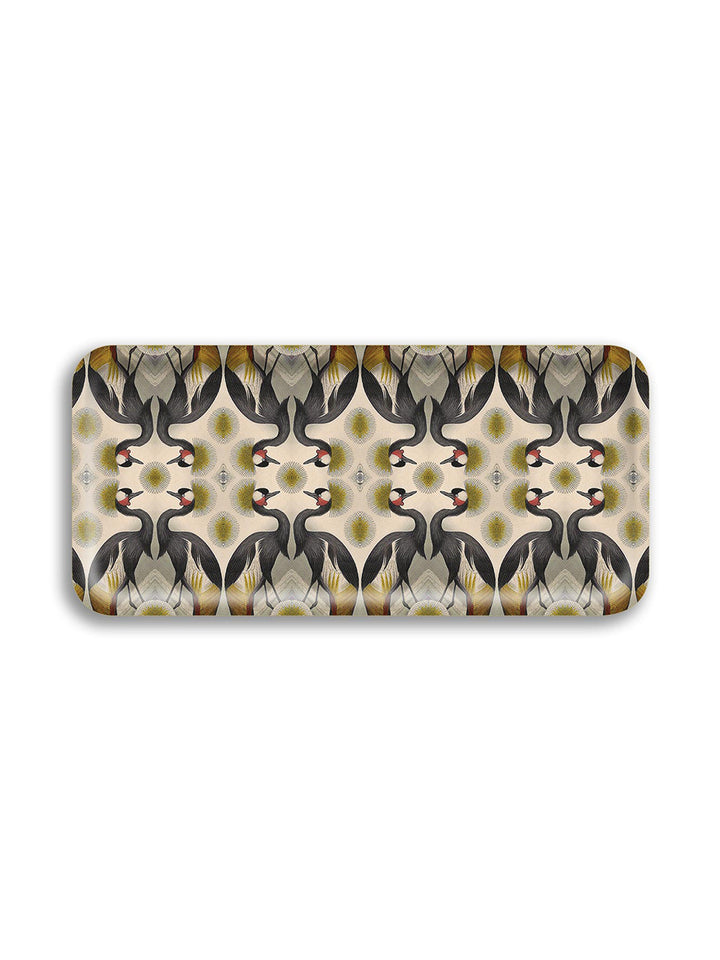 Crested Crane Narrow Birch Wood Tray