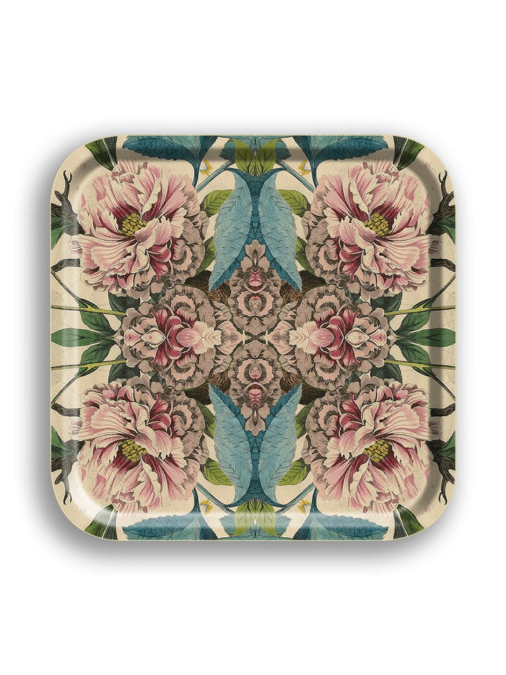Peonies Square Birch Wood Tray